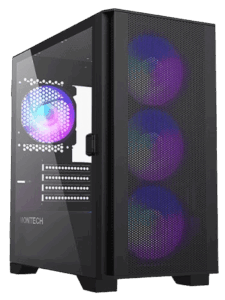- PCケースについてPCケースはコスパが良さげなのを割と適当に選んでいます。搭載予定のCPUクーラーやビデオカードがちゃんと入るのかの確認は最低限必須ですが、好みといえる見た目や静音性やエアフローのどこを重視するかなどの点もあるので、各自で好みのものを一度調べてみる事をおすすめします。空冷のCPUクーラーを採用する場合はPCケース内の通気性も重要となるので、ケースファンも意識しましょう。安いケースだと付属ケースファンが小型のものが1つとか2つの場合も多いので、状況によってはケースファンの追加購入や別ケースの検討も視野に入れましょう。