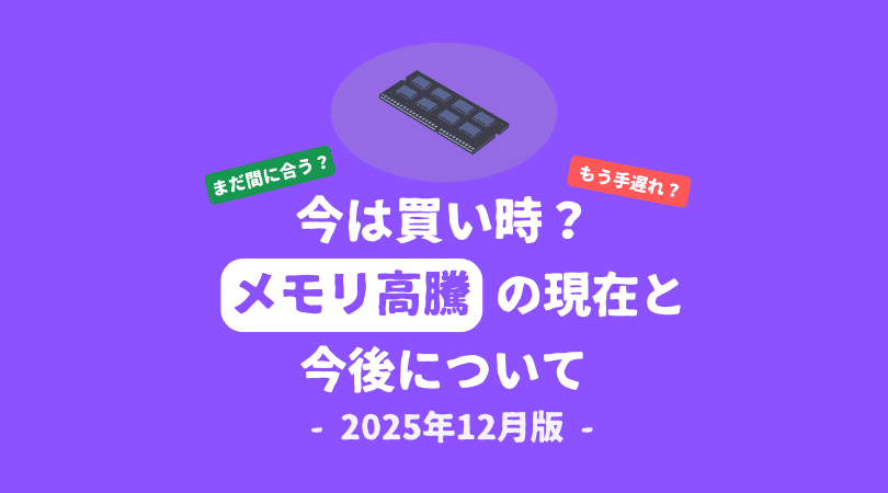原因はこれから詳しく触れていきますが、2025年12月現在、メモリ価格がめちゃくちゃ高騰しています。